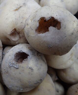 ジャガイモがかじられる、穴が開く、えぐられる