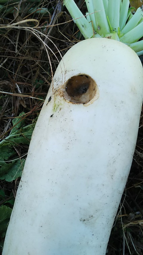 【失敗の傾向】 大根の地上部にでている所に穴が開く 【原因】 ナメクジによる食害 地上部がでたままで畑においておく時間が長い 【対策】 早く収···