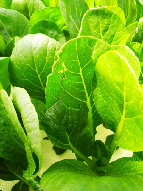 小松菜の葉に小さな穴が空く、小松菜の葉がかじられている